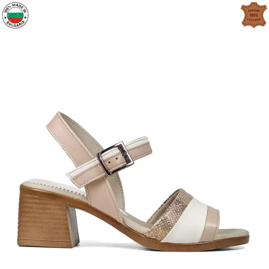 Български дамски кожени сандали от естествена кожа в бежово на удобен среден ток 2023194-1