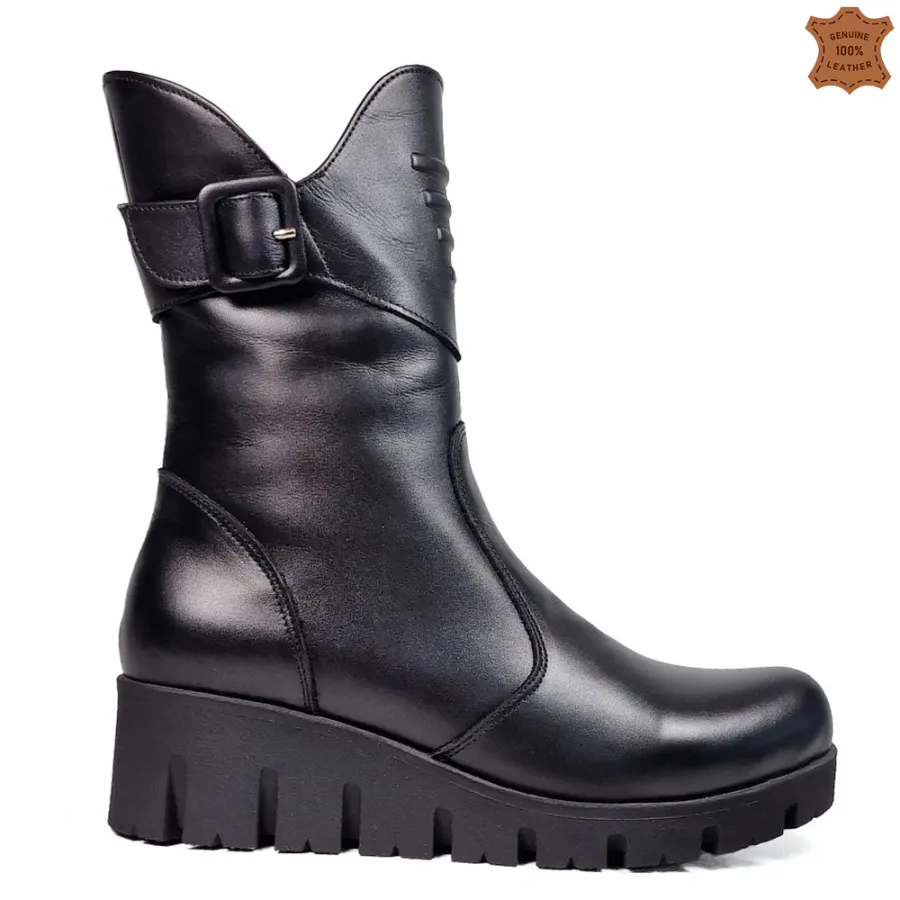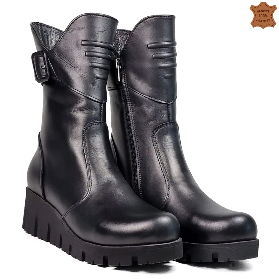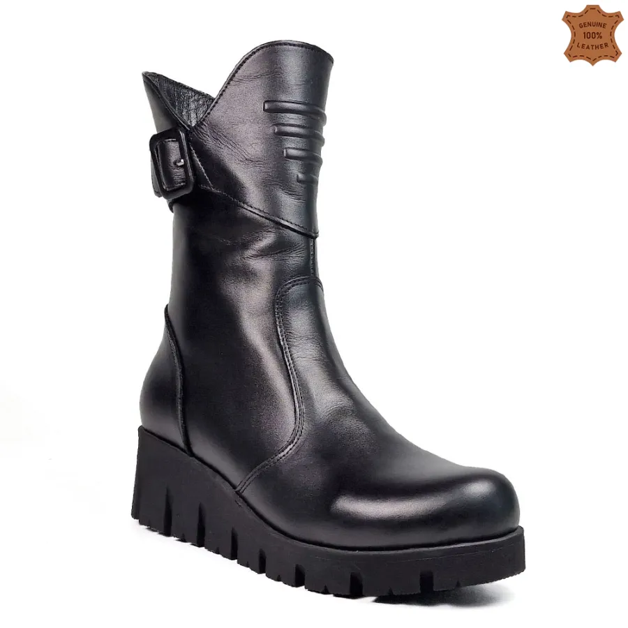 Това, с което Черни дамски боти от естествена кожа с платформа 29304-1 изпъкват пред останалите дамски боти в този клас е: