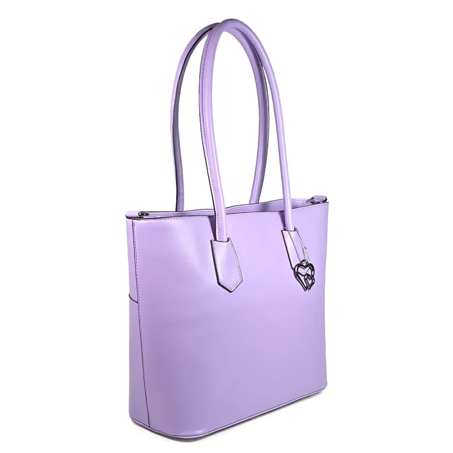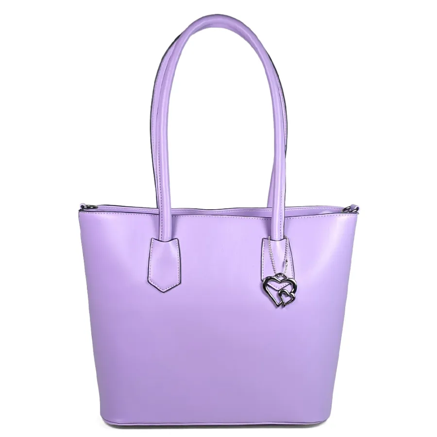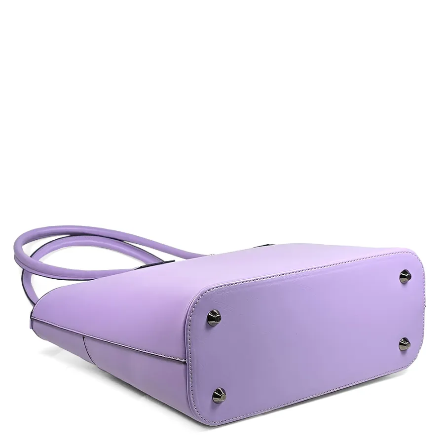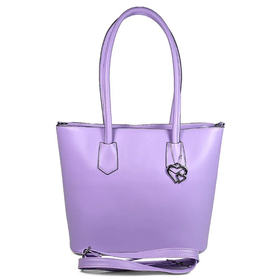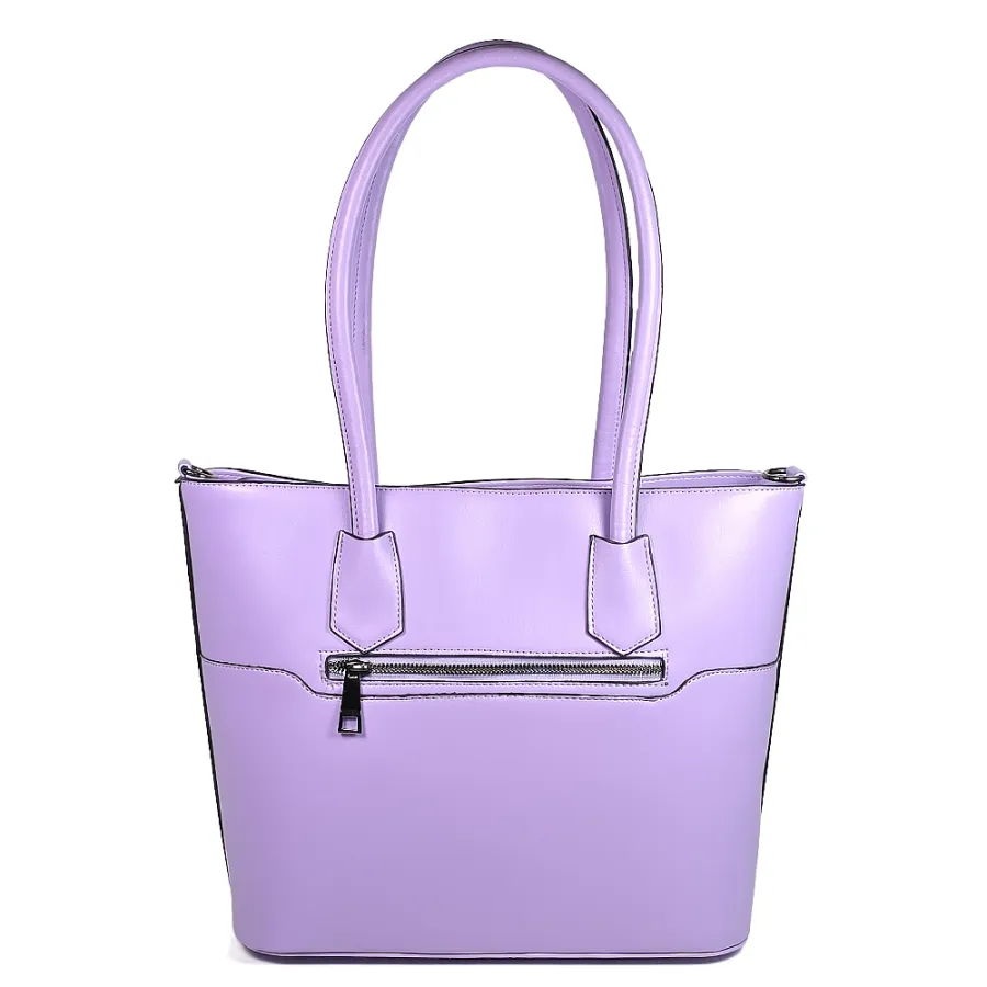 Ежедневна дамска голяма чанта от еко кожа в лилав цвят с метален аксесоар N85042-2