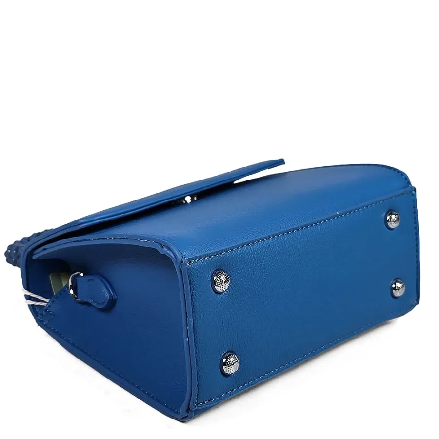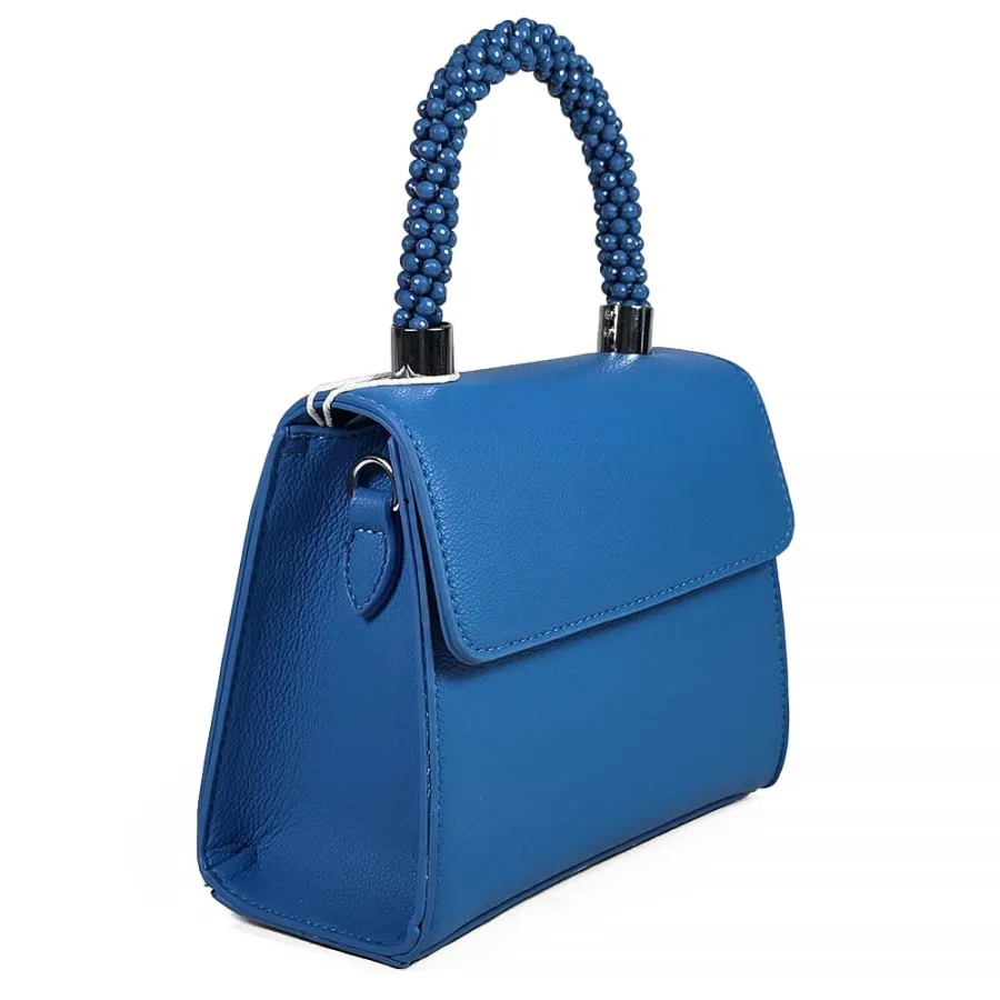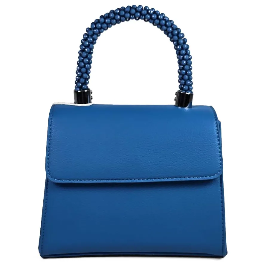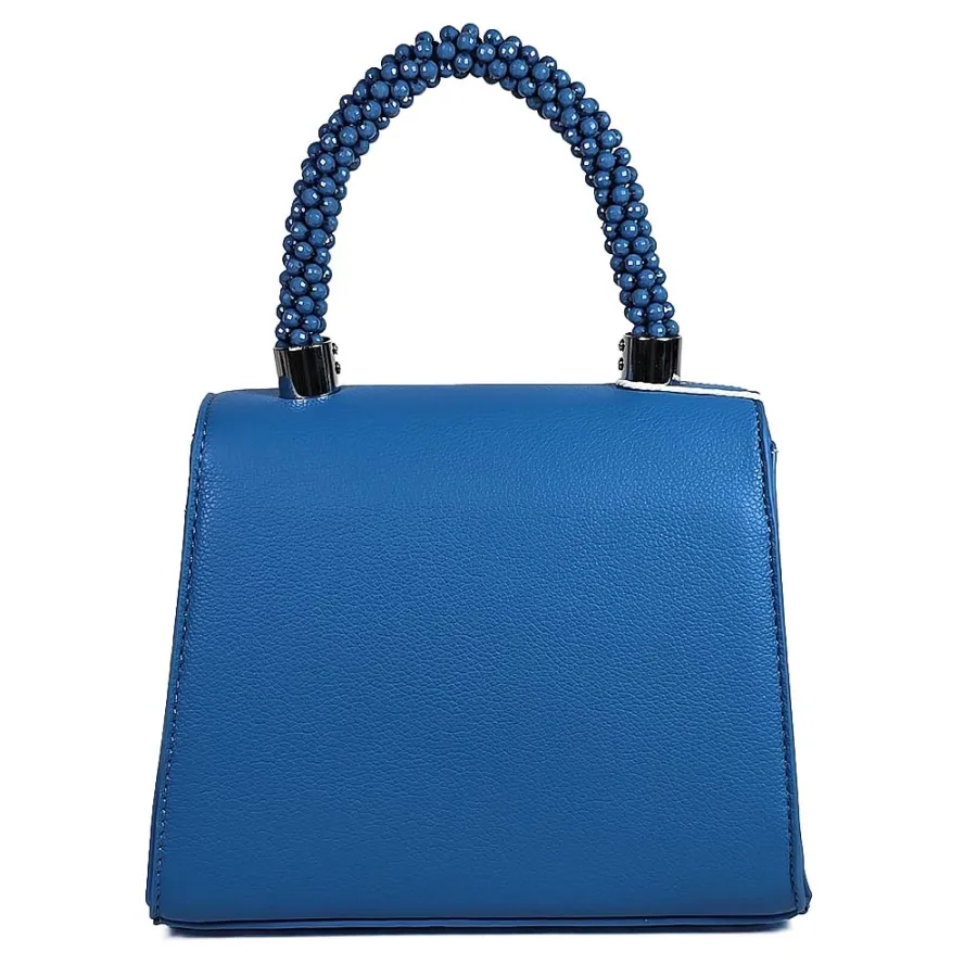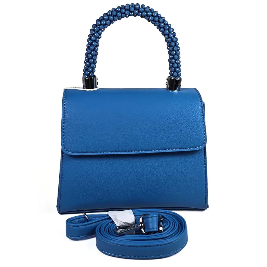 Елегантна дамска чанта от еко кожа в синьо с ефектна дръжка с камъни N85023-5